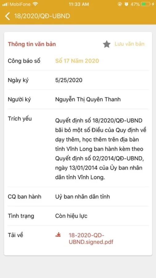 - Xem thông tin chi tiết từng văn bản.