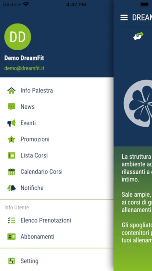 E' possibile, tramite l’app di “DreamFit Vercelli”, far gestire in totale autonomia corsi, lezioni e abbonamenti messi a disposizione dalla struttura sportiva.
