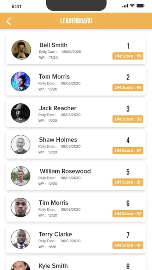 4. In the end, they can also view the leaderboard and see their position in the rally among other users.