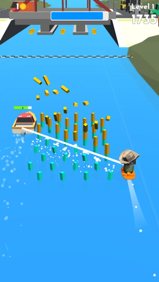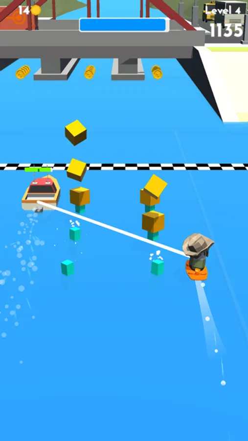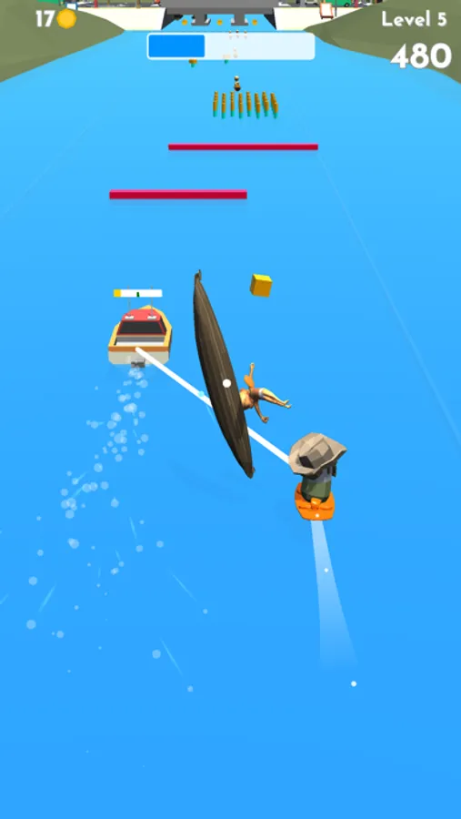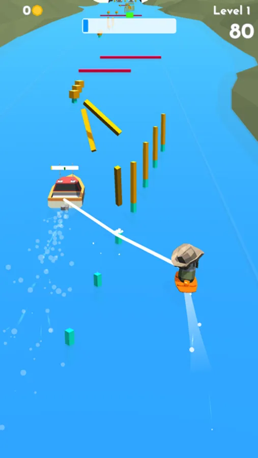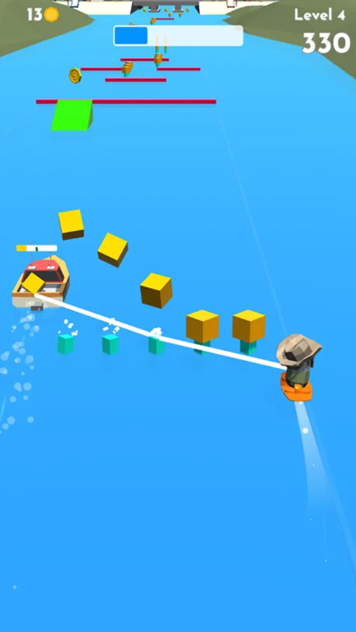 Move sideways with your wakeboarder and use your rope to cut and collect objects!