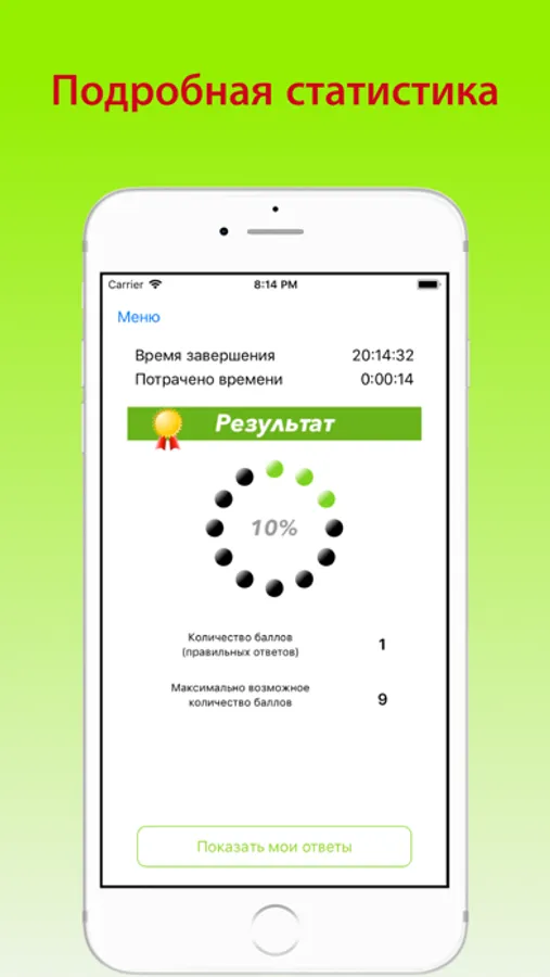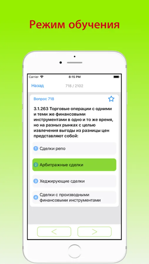 • Подготовка - Позволяет изучить вопросы в текстовом формате с отмеченными правильными ответами;