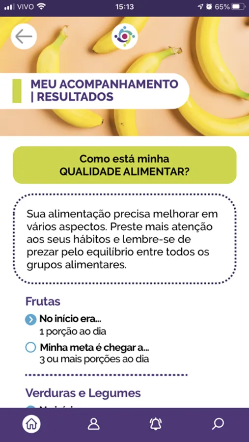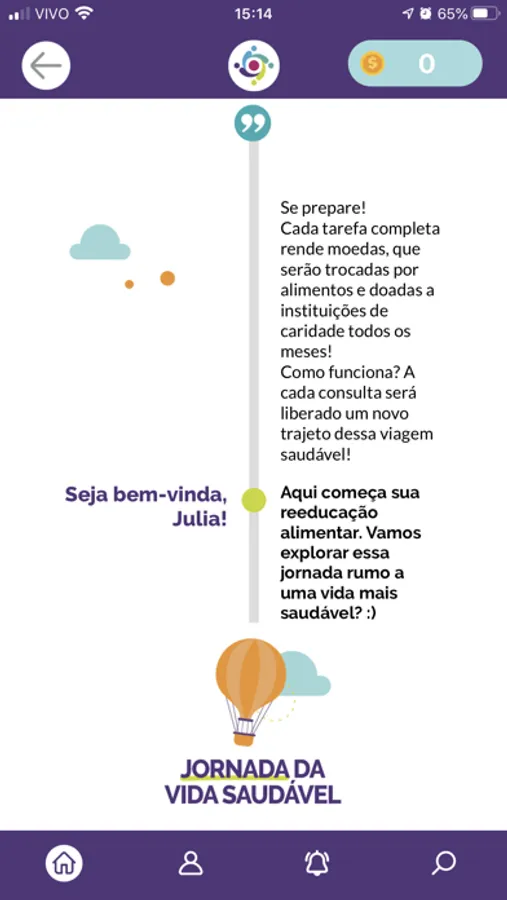 • Jornada da Vida Saudável: receba conteúdos sobre alimentação e responda a perguntas para testar seu conhecimento e ganhar moedas que se transformam em ação social!