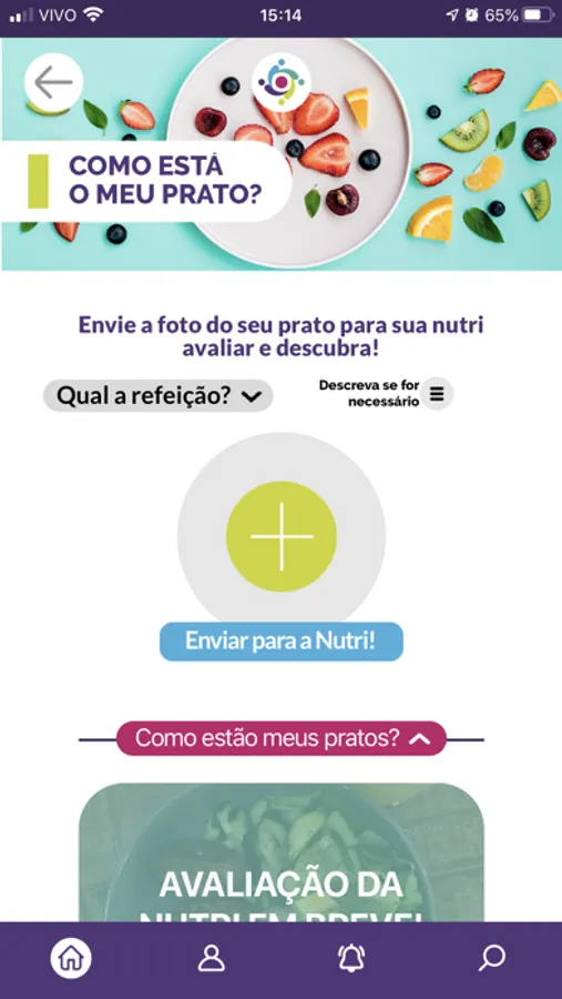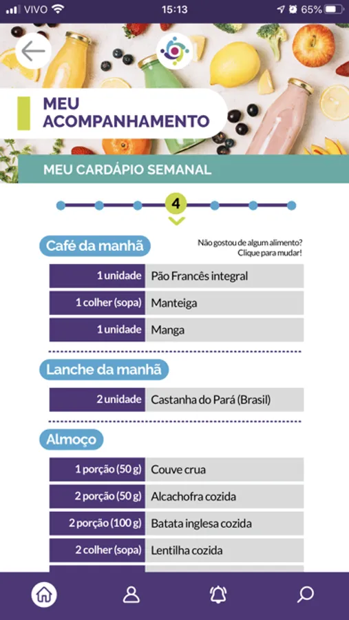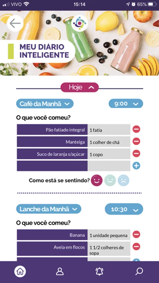 • Diário alimentar inteligente: registre o que comeu e o app corrige conforme plano alimentar prescrito