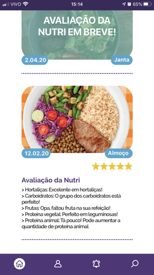 • Consulta de plano alimentar prescrito pelo nutricionista