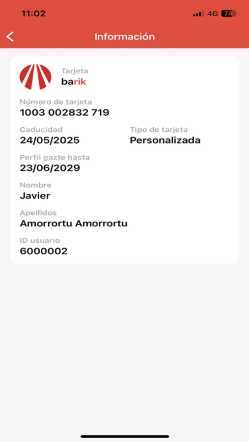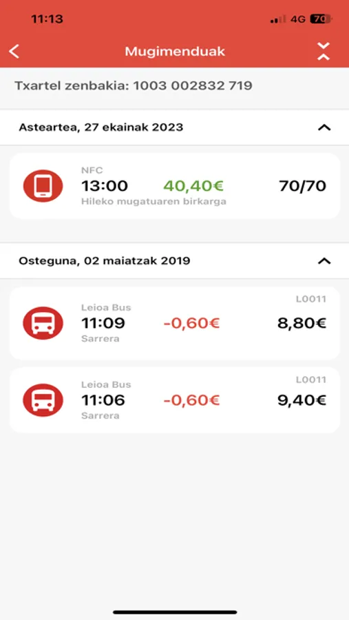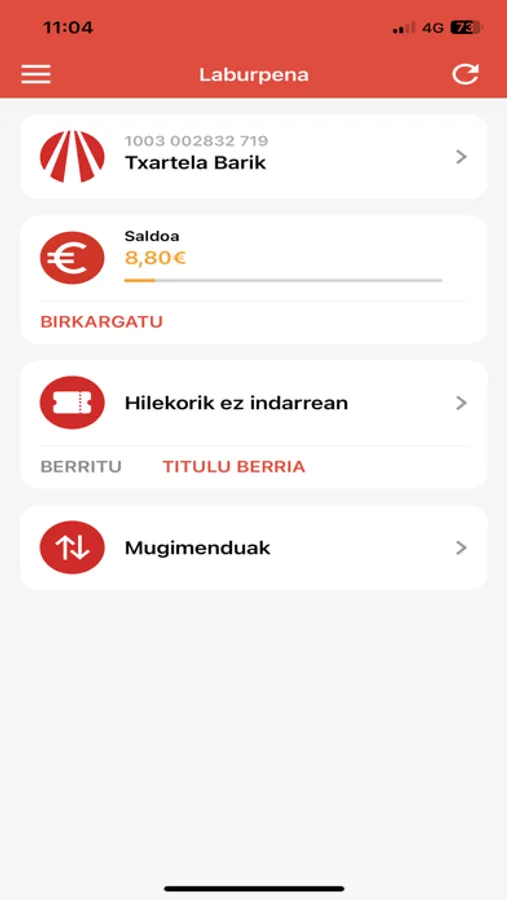 • Edozein Barik txartelen edukia eta hari lotutako datuak kontsultatzea, azken 30 mugimenduak barne.
