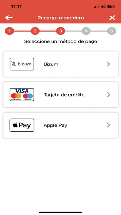 • Pago mediante tarjeta de débito/crédito, Apple Pay o Bizum.