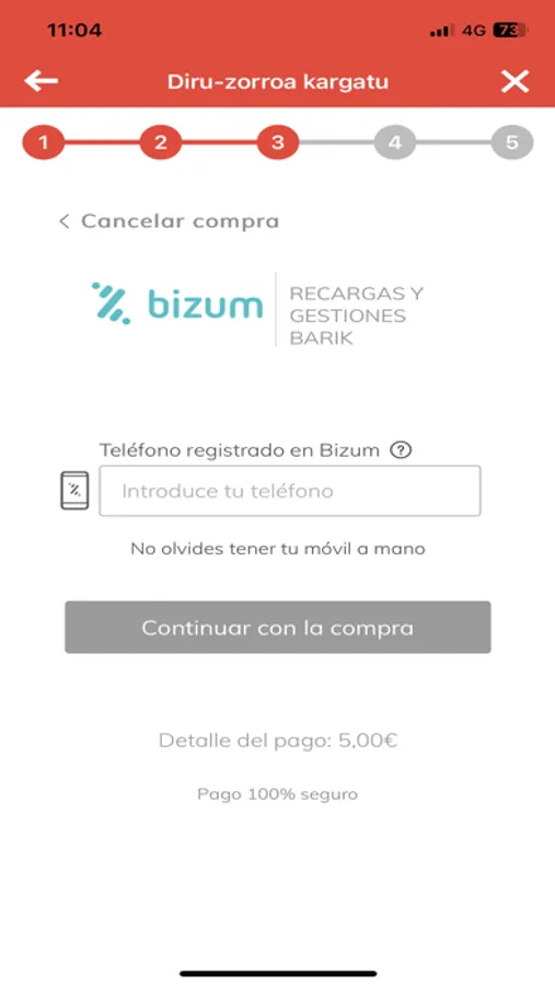 • Zordunketa-/kreditu-txartel, Apple Pay edo Bizum bidezko ordainketa.