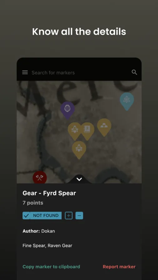 Discover every little detail of the game. Learn the location of each world event, enemy, weapon, gear or treasure. Choose the map you are currently exploring: Norway, England, Vinland, Asgard and Jotunheim. Over 1500 markers are waiting for you!