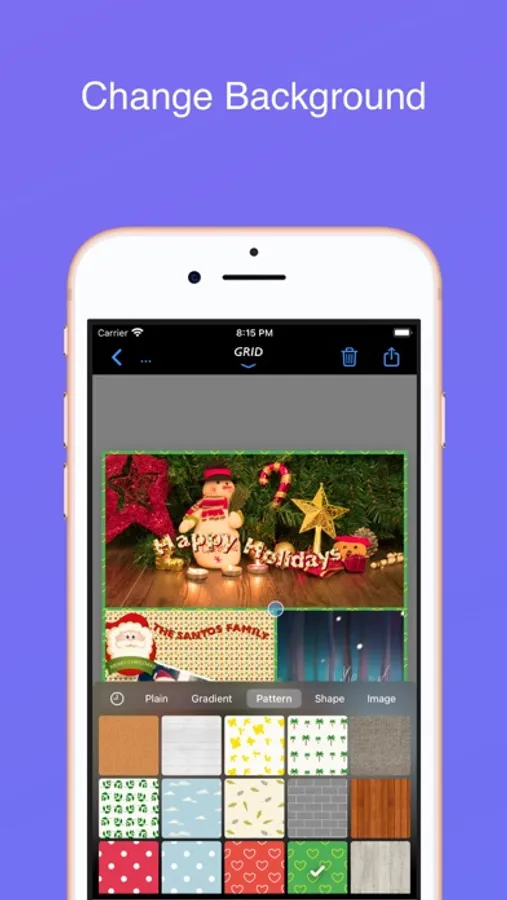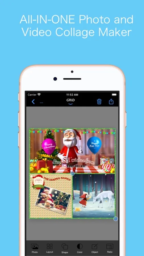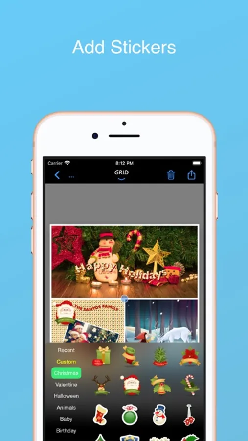 Choose from hundreds of photo grids, exclusive stickers, and festive background patterns.