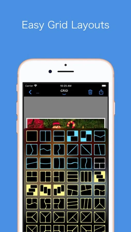 - Grids: Instant layouts to quickly arrange photos from your gallery or Facebook.