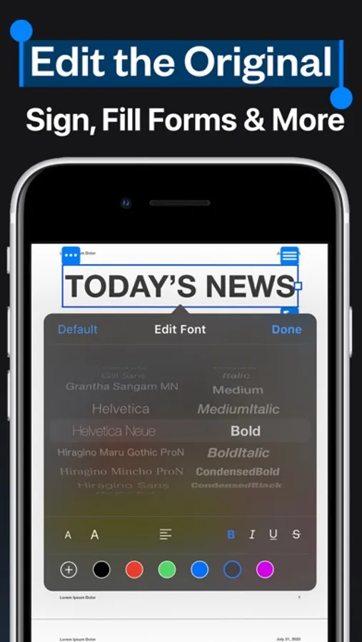 • Beautiful UI to edit text in your PDF documents