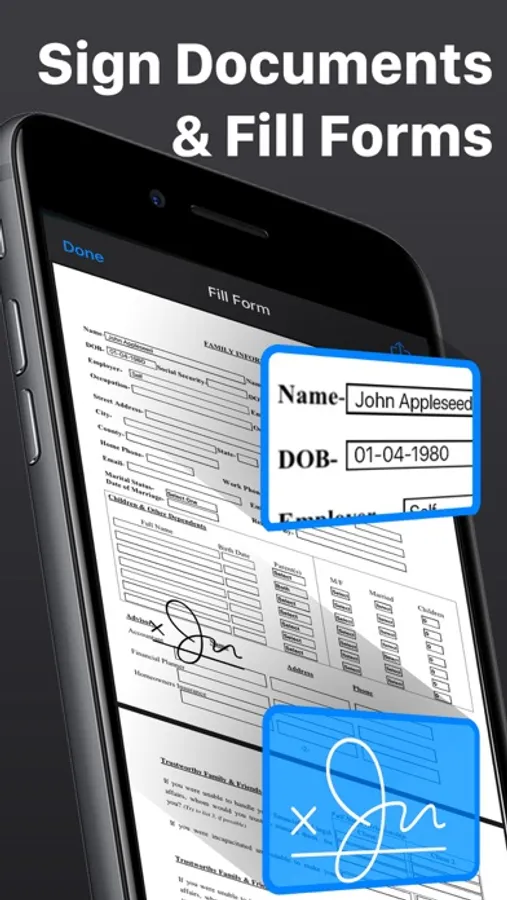 • Scan & Fill PDF document/forms