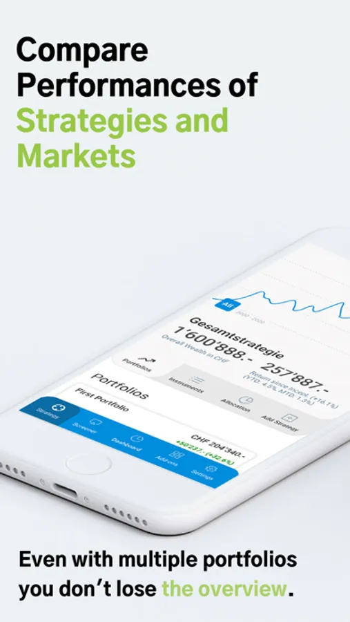 - Complete overview of your portfolio by currency, asset class, sustainability, etc.
