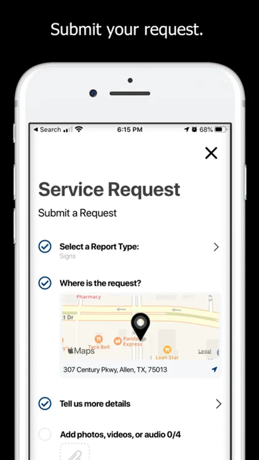 MyAllen is your real-time reporting tool for City of Allen, Texas work requests. Help us find and address issues related to code violations, animal control, traffic signals, trash and recycling, sewers, streets and more. If it needs repair or attention, just send us a report with a few clicks; you can even attach a photo or video! Use the app as a guest or create an account to get status updates about your request. Let us know, then watch us go!