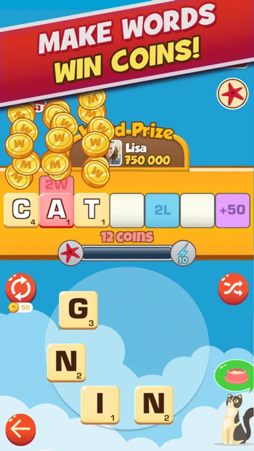 Earn jackpots based on bonus tiles, play daily events, and complete special questions that unlock "pets" which can earn you more coins.