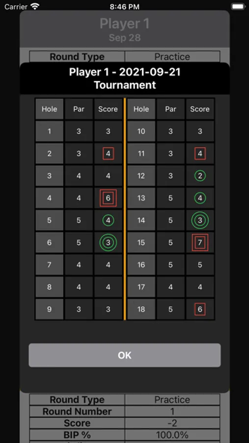 Complete drills, save aggregate round statistics, and input your scores with additional statistics for each hole, all from your mobile phone.