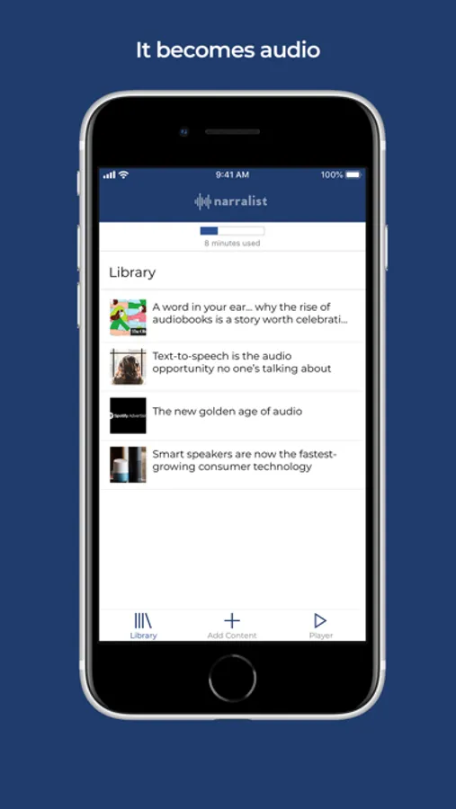 Meet Narralist – your personal narrator. Narralist reads anything. All you have to do is listen. Stay up to date on news, articles, posts, feeds, documents, or anything else you can read. Listen while you do other things.