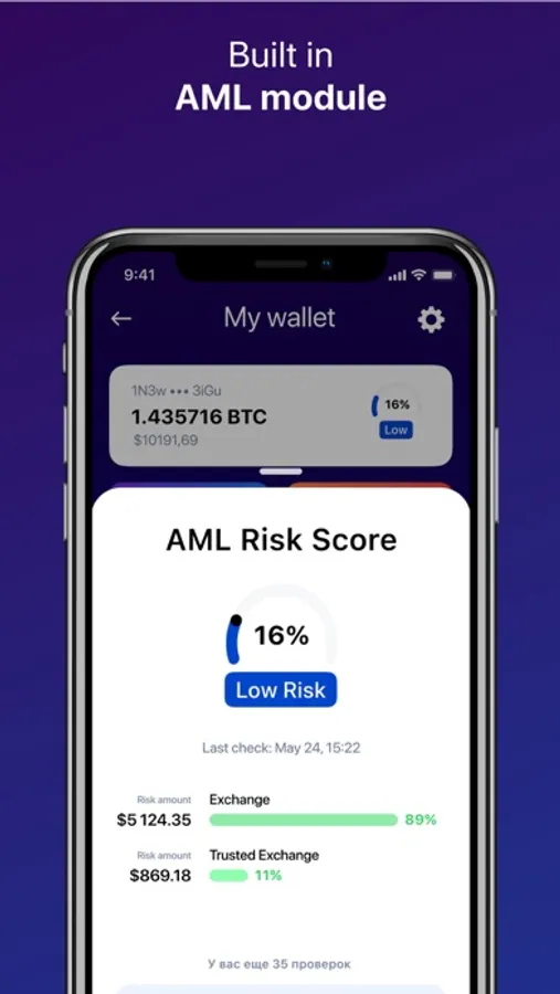 Detailed transaction source and risk scoring first time available in the personal crypto wallet. AMLSafe allows you to accurately determine the entire chain of origin of coins and show the detailed risk level of incoming and outgoing transactions. We take care of your security and reputation.