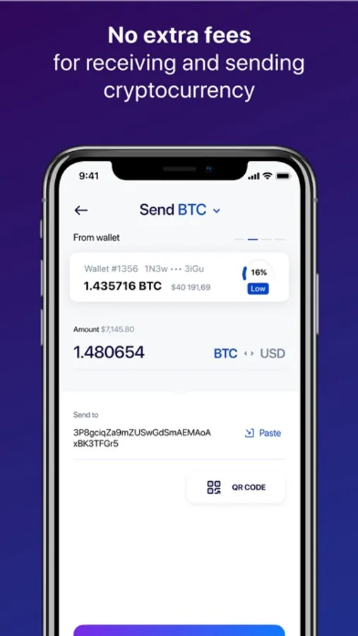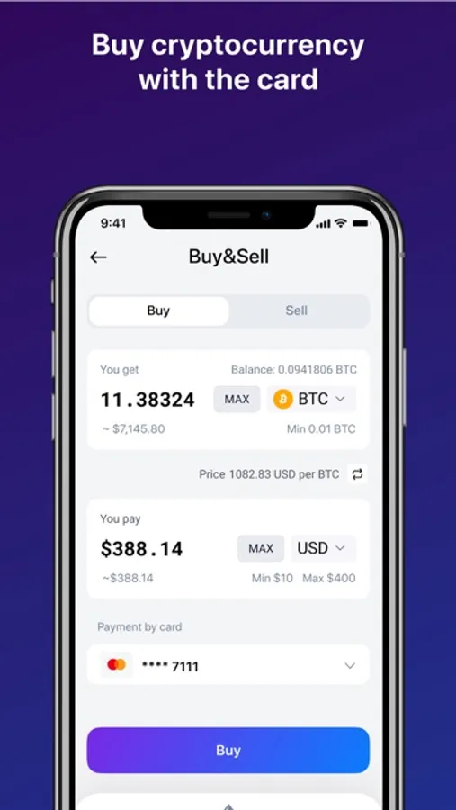 Our wallet allows you to store, buy and sell popular crypto assets through fiat pairs.
