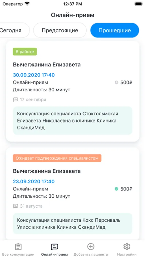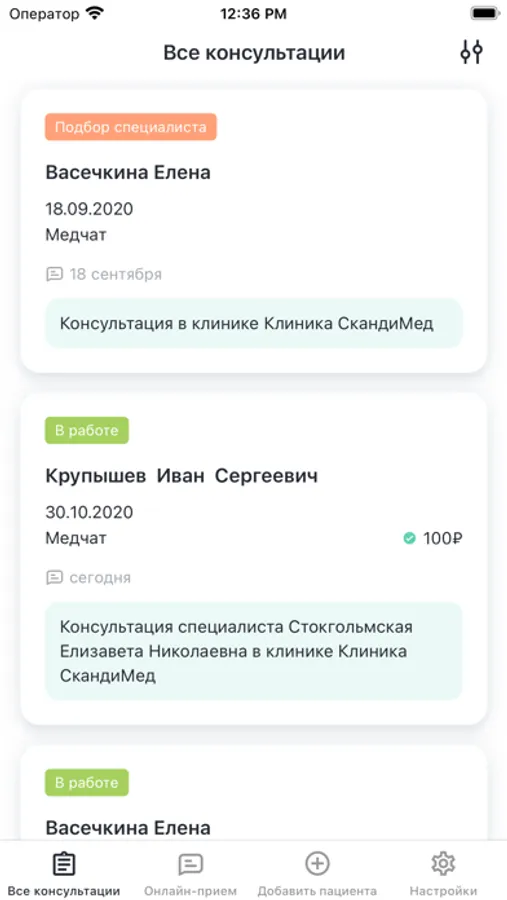 * Добавлять новых пациентов в 1 клик