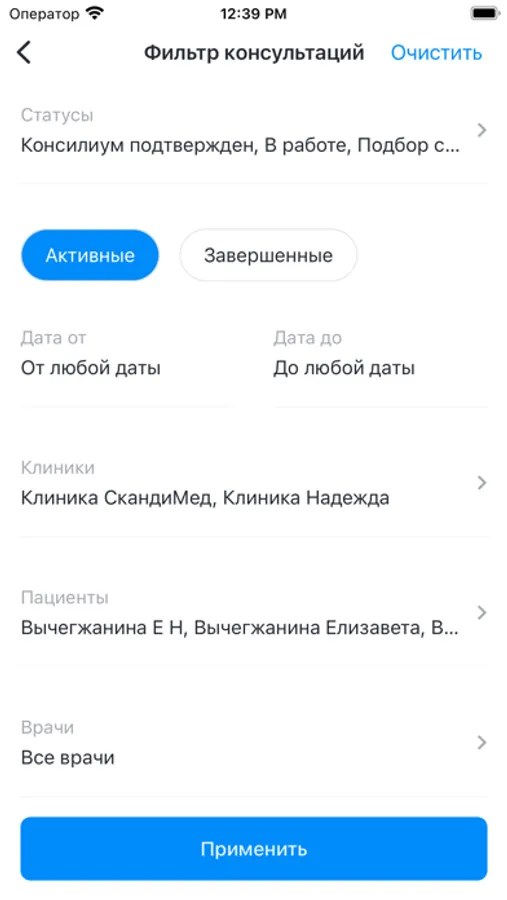* Смотреть результаты анализов, обследования и заключения других специалистов, к которым пациент предоставил доступ