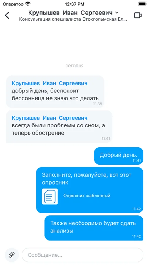 * Общаться с пациентами в чате с функцией видеозвонка