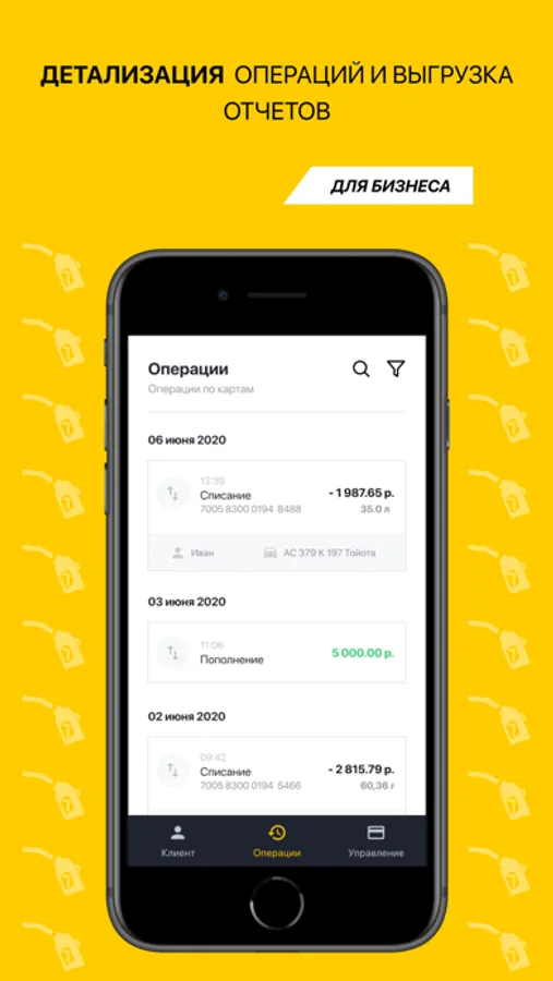 Детализация по картам, списания, пополнения, фильтрация транзакций и выгрузка отчетов