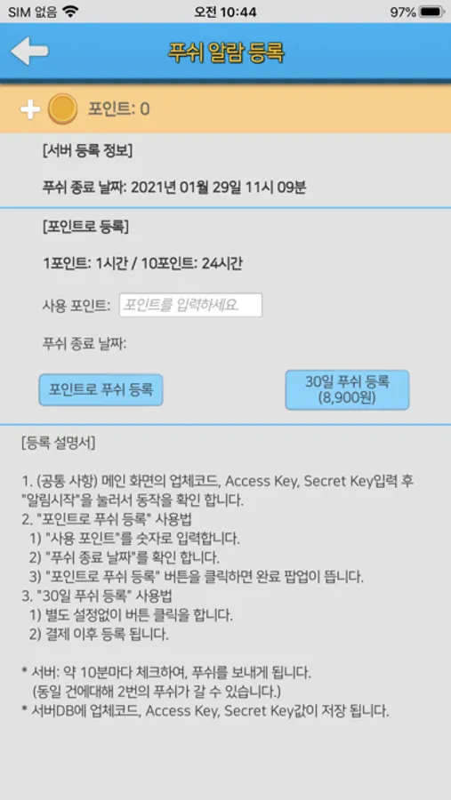 *** 푸쉬 알림 등록 기능이 추가 되었습니다. ***