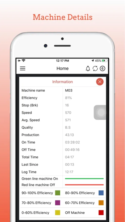 - Colored Indication of Machine Status for Machine Running, Machine Stopped.