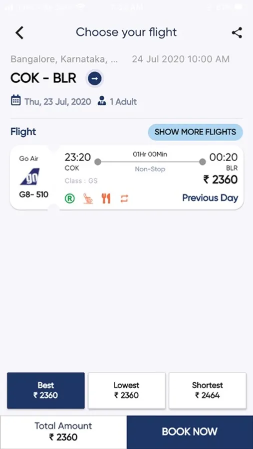 - With Best option selection, the app will recommend the perfect flight for your travel based on meeting time and traffic conditions, etc. Be rest assured that you will be reach the meeting on time.