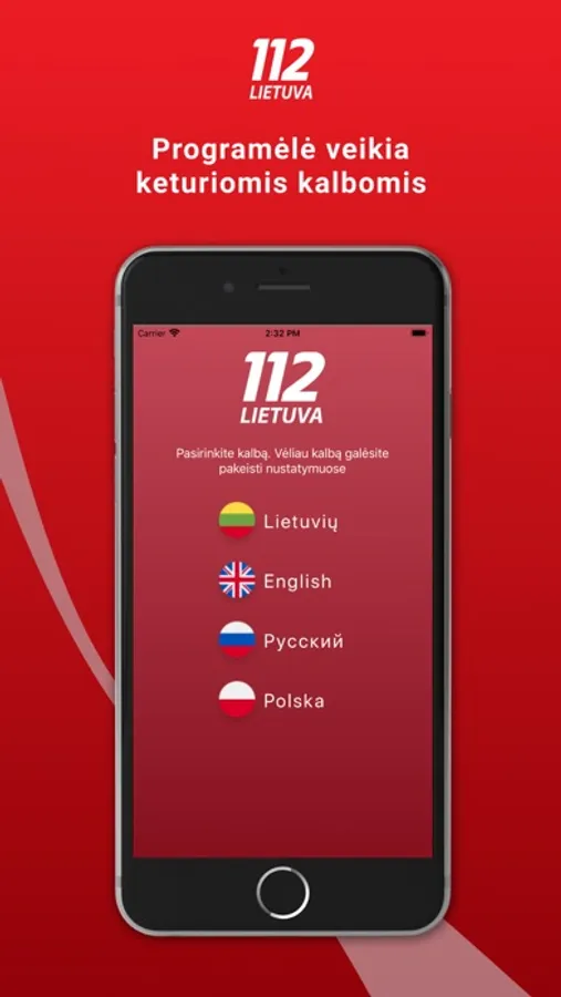 - Vartotojas gali pasirinkti vieną iš 4 kalbų: lietuvių, anglų, rusų, lenkų.