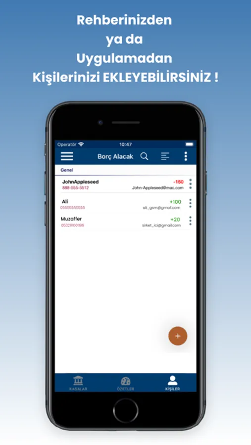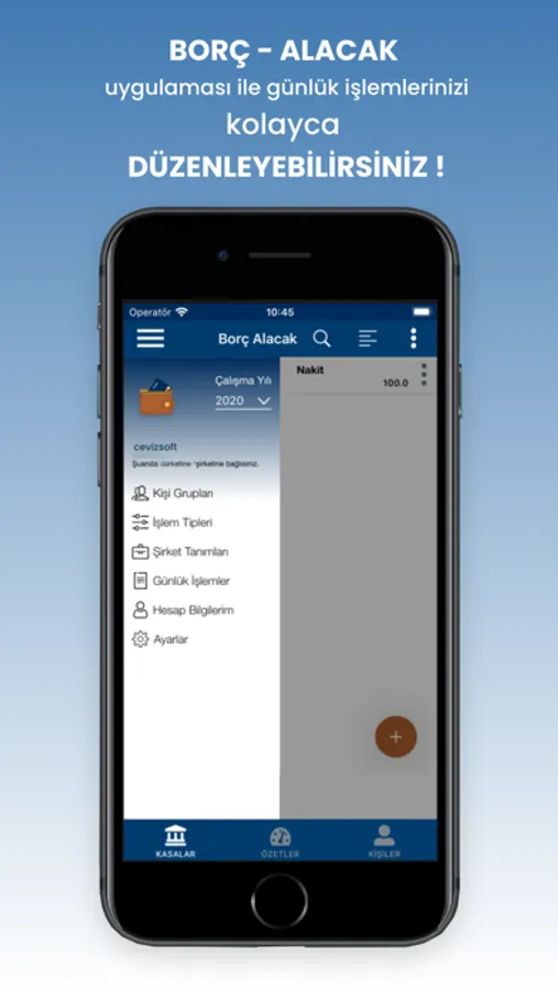Bu uygulama basit anlamda alacak verecek ve kasa takibini yapan bir uygulamadır. Kasanızı gelir ve giderler cinsinden tutabilirsiniz. Kişileri rehberden yada kendiniz manuel olarak ekleyebilirsiniz. Kişi detaylarına girdiğinizde ilgili kişiye borç ve alacak kayıtları ekleyebilirsiniz. Çalışma yılı sayesinde kayıt kalabalığından kurtulmuş olursunuz. Uygulamayı yedekleyip farklı bir cihazda kaldığınız yerden devam edebilirsiniz. Sonuç olarak kasanızı ve ilgili kişilere ait bakiyeleri görebilir ve bunları yönetebilirsiniz.