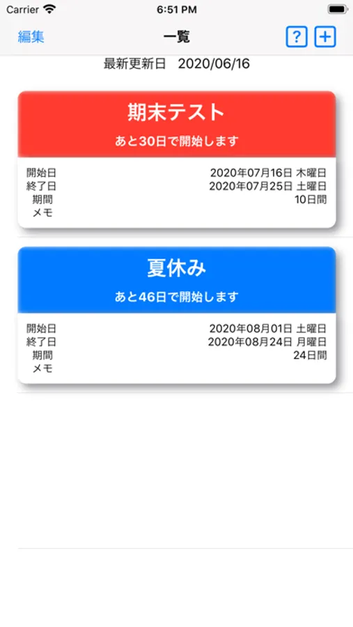 開始日と終了日の両方が管理できるシンプルなアプリです。