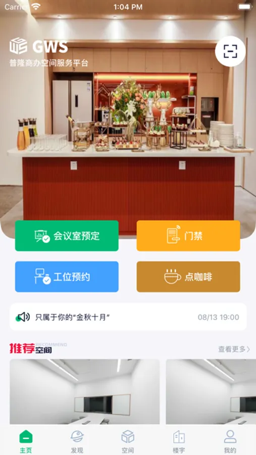 GWS普隆空间的会员APP是为所有对优质办公服务及环境有追求的企业家们量身打造的APP,是一个连接社区内所有梦想实干家的平台。会员APP可以实现办公空间智能门禁设置、会议室、办公空间预定,随时随地满足会员的办公需求。