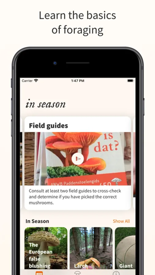 Start foraging - Get notified when certain mushrooms are in season, and get updates about Edwin's next foraging excursions.