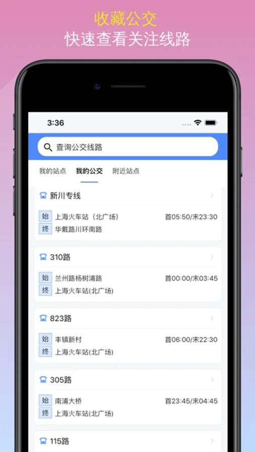 【收藏站点】关注站点实时到站信息直观快捷,一步到位