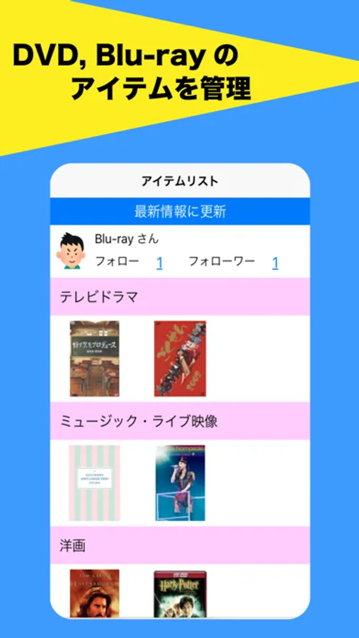 アプリ内でDVD,Blu-ray(ブルーレイ)アイテムを管理できる