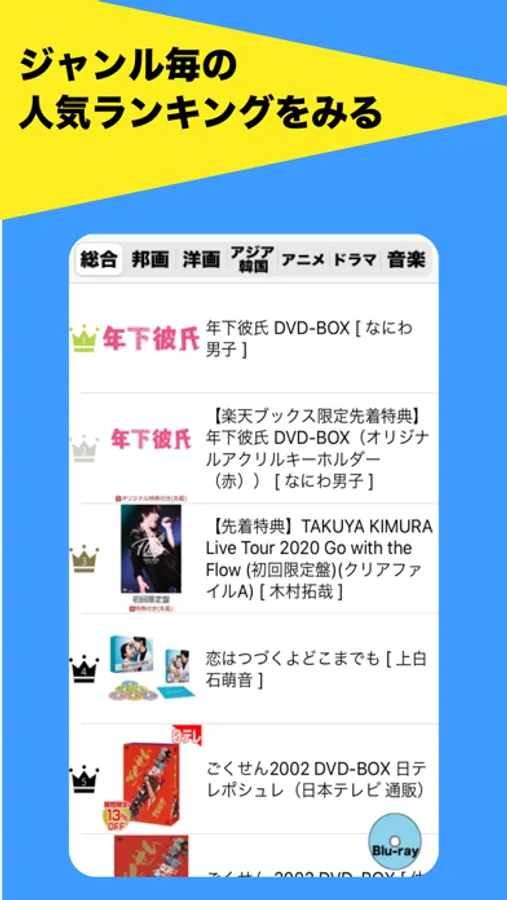 DVD,Blu-ray(ブルーレイ)の詳細情報が確認できる