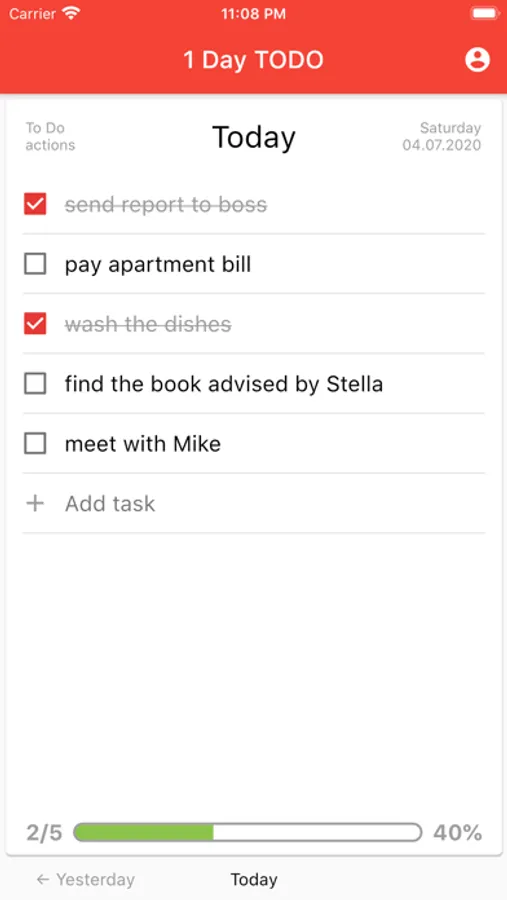 Everything that you do not have time to complete will be automatically rescheduled the next day, so that you begin work tomorrow with a ready to-do list.