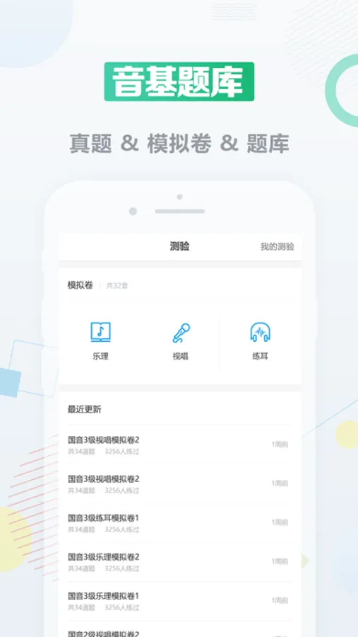 音基考试模拟题库包括视唱练耳、乐理和音乐常识等学科,共计10000逾道试题和1000套机考模拟试卷,是根据音基考试大纲命题,与考试题型相同,题库覆盖有中央音乐学院初级、中级,中国音乐学院基本乐科一级、二级、三级,上海音乐学院D、C、B、A级,英皇1~8级等。