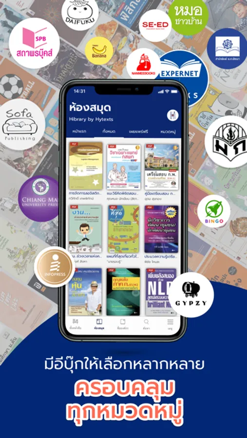 - อีบุ๊กออกใหม่และขายดีจากสำนักพิมพ์ต่างๆ ในรูปแบบลิขสิทธิ์อีบุ๊กสำหรับห้องสมุดอิเล็กทรอนิกส์