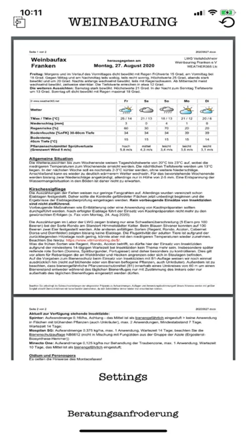 Das Weinbauring ist ein Service des Weinbauring Franken e.V. Diese App dienst zur Anzeige des jeweils aktuellen Weinbauring und informiert den Benutzer über die Veröffentlichung eines neuen Weinbaufaxes.