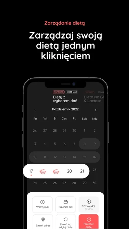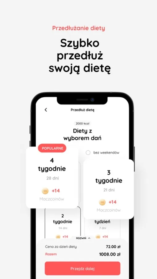 • Szybkie przedłużanie diety, zmiana kaloryczności lub programu