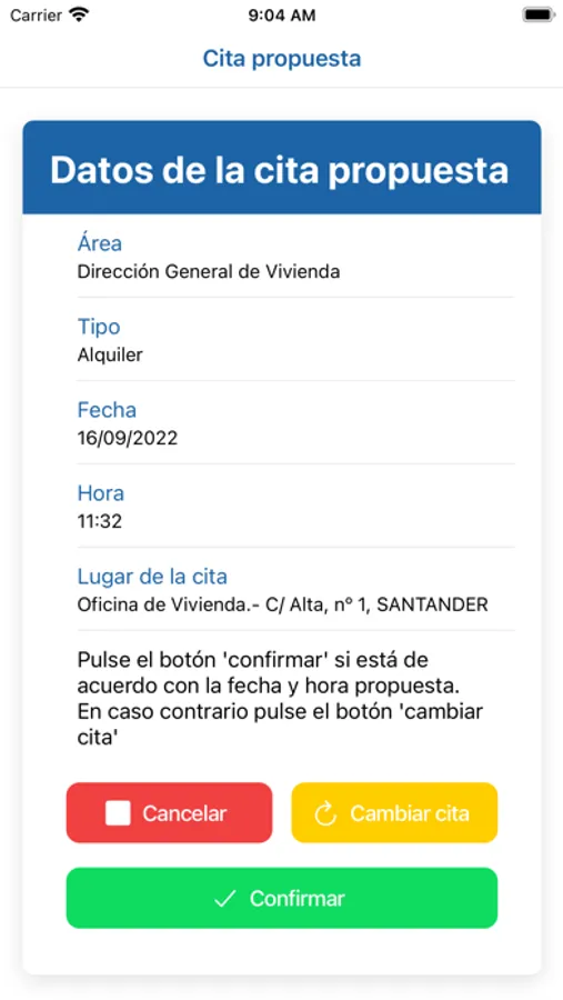 Aplicación oficial del Gobierno de Cantabria que te permitirá solicitar, consultar y anular citas para ser atendido presencialmente en algunas de nuestras oficinas de atención al ciudadano. gracias a esa app, cada ciudadano podrá realizar de forma muy cómoda la reserva de la cita previa para la que desee ser atendido, así como anular una cita si así lo desea.