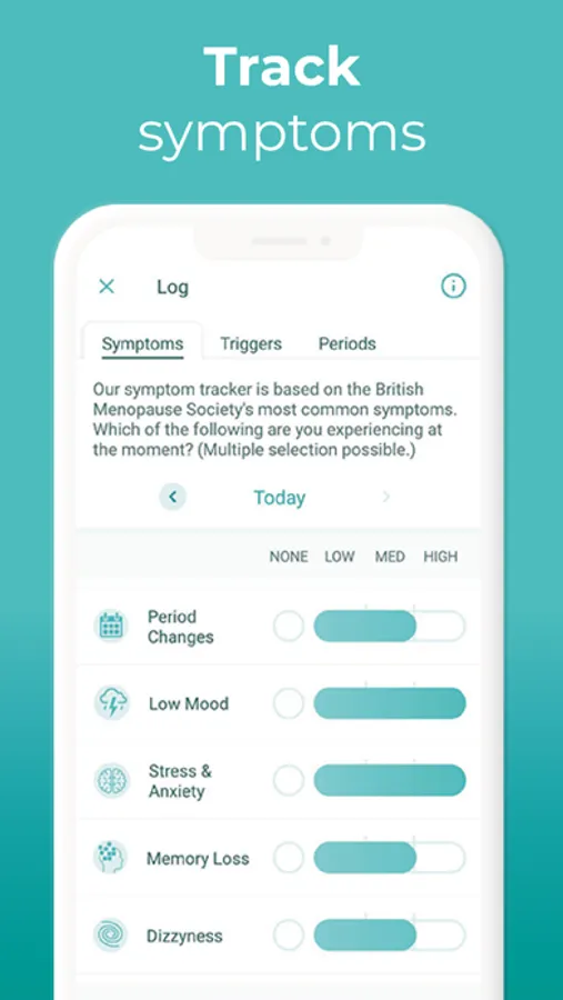 - Keep a daily log of symptoms, triggers and activities to track your menopause overtime