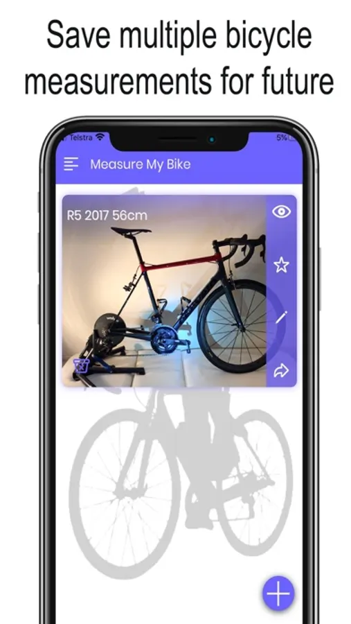 • Save critical bicycle measurements. The Measure my Bike app is built to keep your critical bicycle setup measurements and service history in one place. Simply measure and record your measurements in the manual measurement selection after capturing a picture of your bicycle by using your IOS Camera. Use a tape measure to accurately measure the Saddle height or other parts of the bicycle then simply draw in the positions on the bicycle you want to record using your touch screen pencil, click in the middle of the line to input or change your measurement and that’s it.