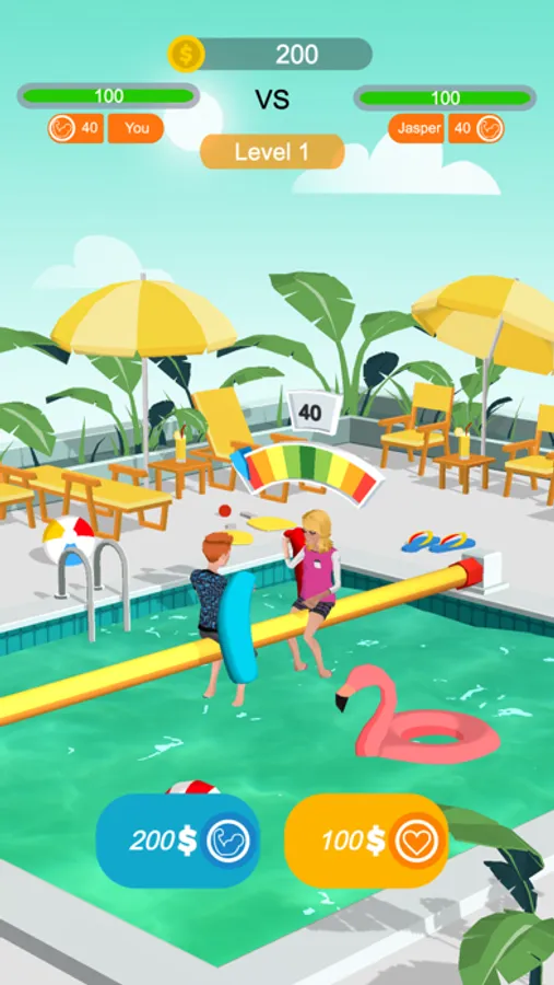 Try to not to fall off the bamboo. Hit as hard as you can.