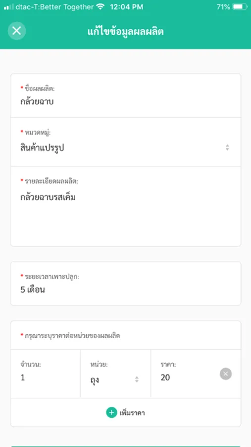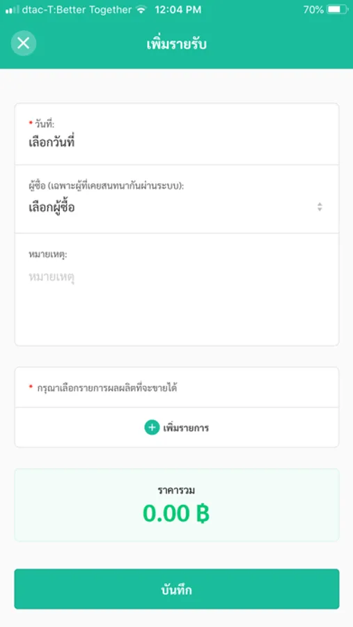 ผู้ขาย สามารถเพิ่มช่องทางการขาย และทำการบันทึกรายได้จากแอพเพื่อทำการต่อยอดในอนาคต