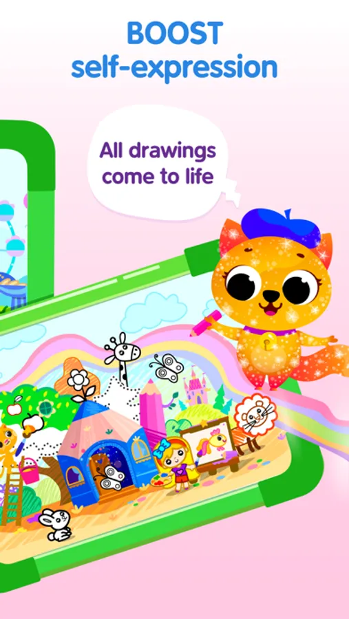 This edutainment app is designed to prepare your kid for school in a playful way. Your kid will learn with a laugh while playing with cute characters in their engaging stories.