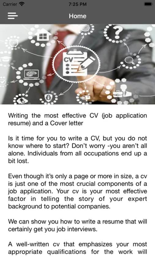 This resume app will help you build you resume step by step, your cv cover letter, touch main issues and provide priceless tips. Following this guide through will make sure you have all you need to write an ideal resume and cover letter.